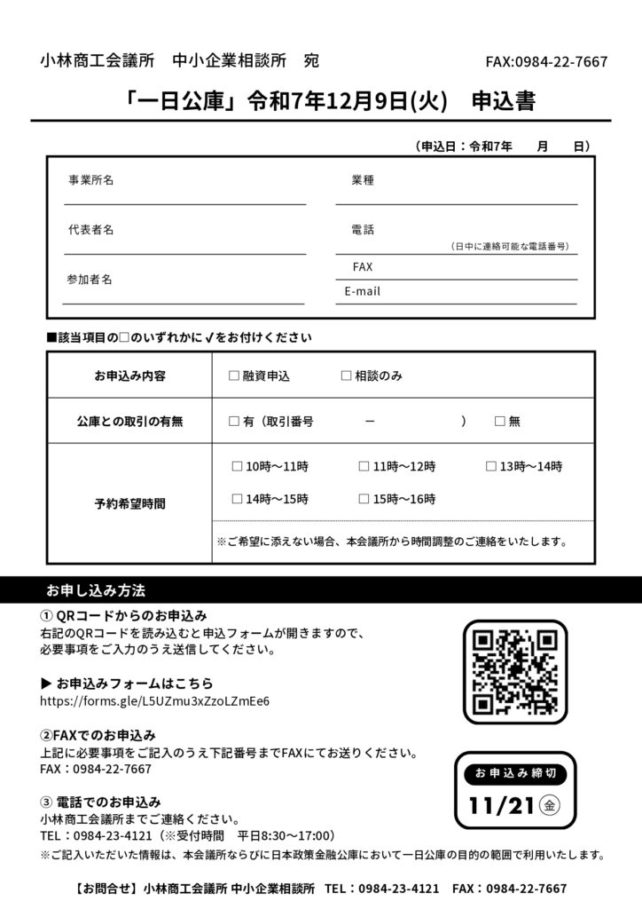「一日公庫」お申込みフォームはコチラから(google.com)